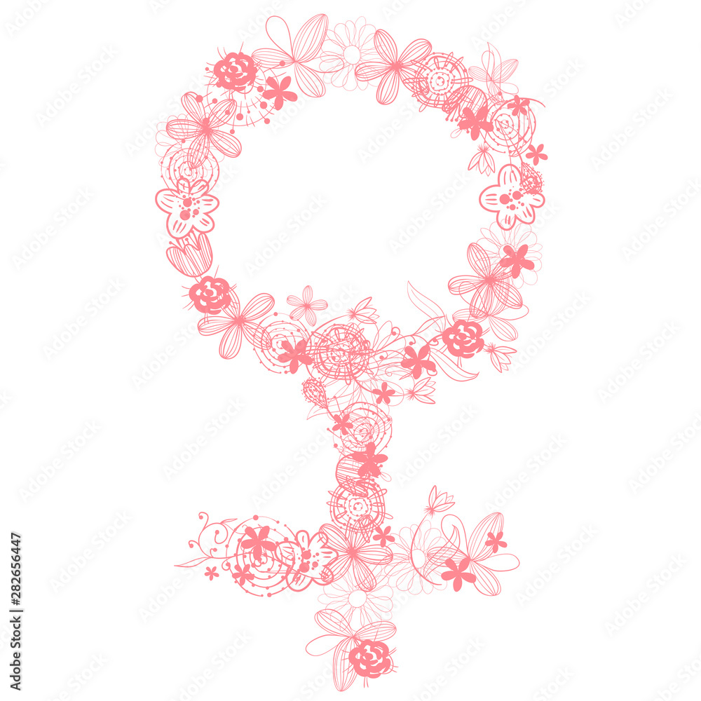 Women S Rights Women S Day Health Care And Medicine Feminism Icon Sign Hand Drawn Women S Logo Feminist Movement Woman Symbol Pink Badge Of Honor Girls Power Gender Venus Symbol With Flowers Stock Vector